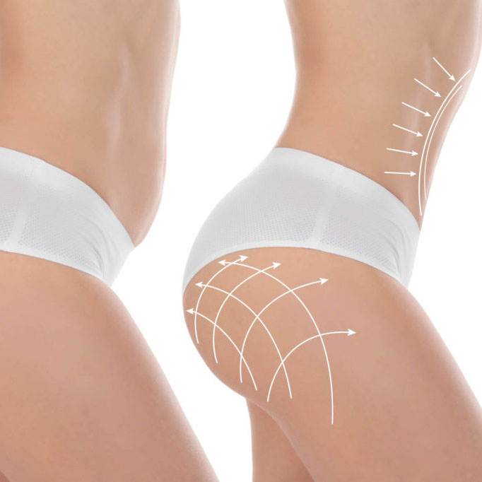 Removal of fat in hips and cellulite treatment. Cavitation, Venus Legacy & Wood Therapy